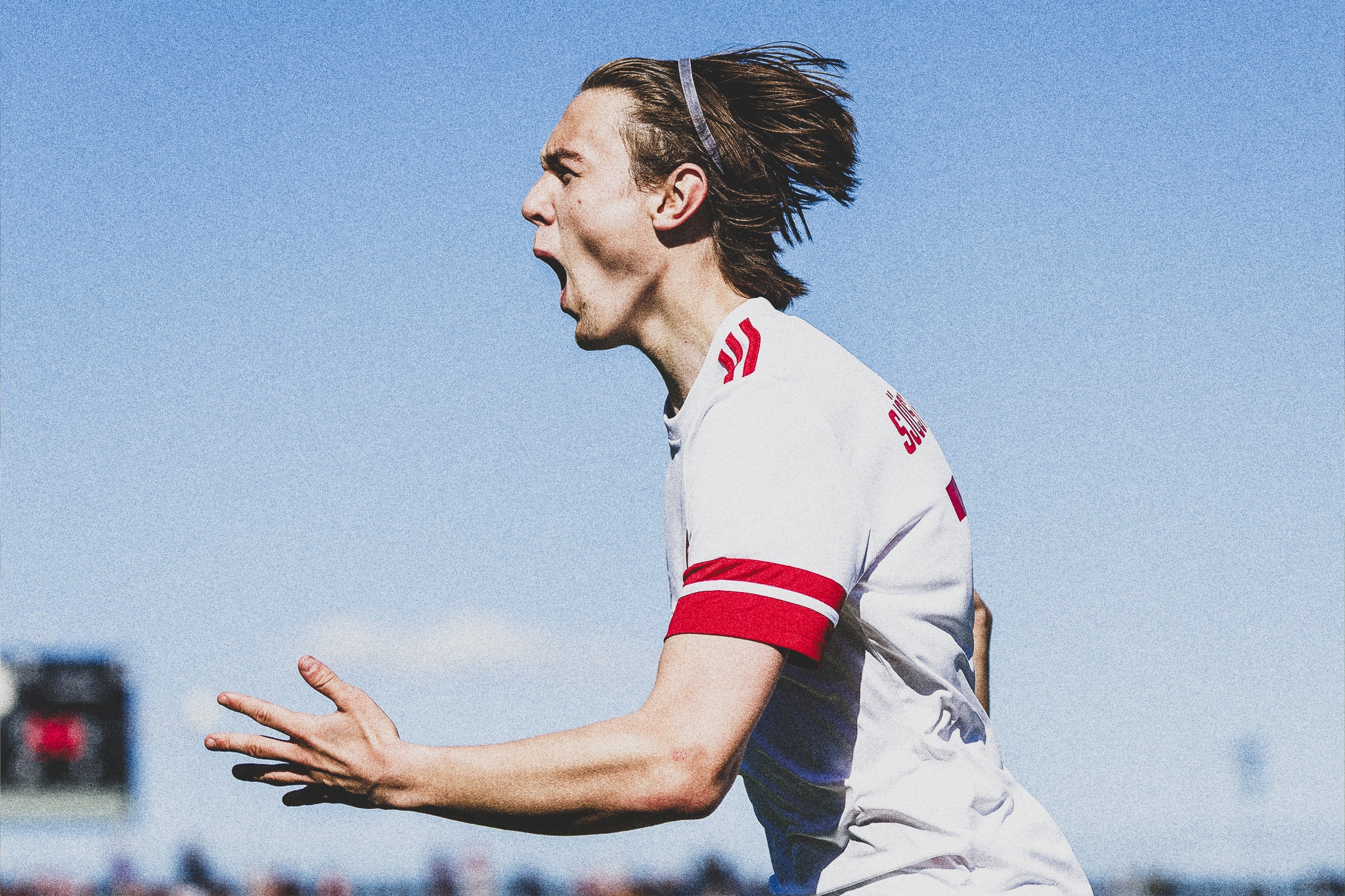 Oscar Sjöstrand firar sitt ledningsmål i den 55:e minuten.