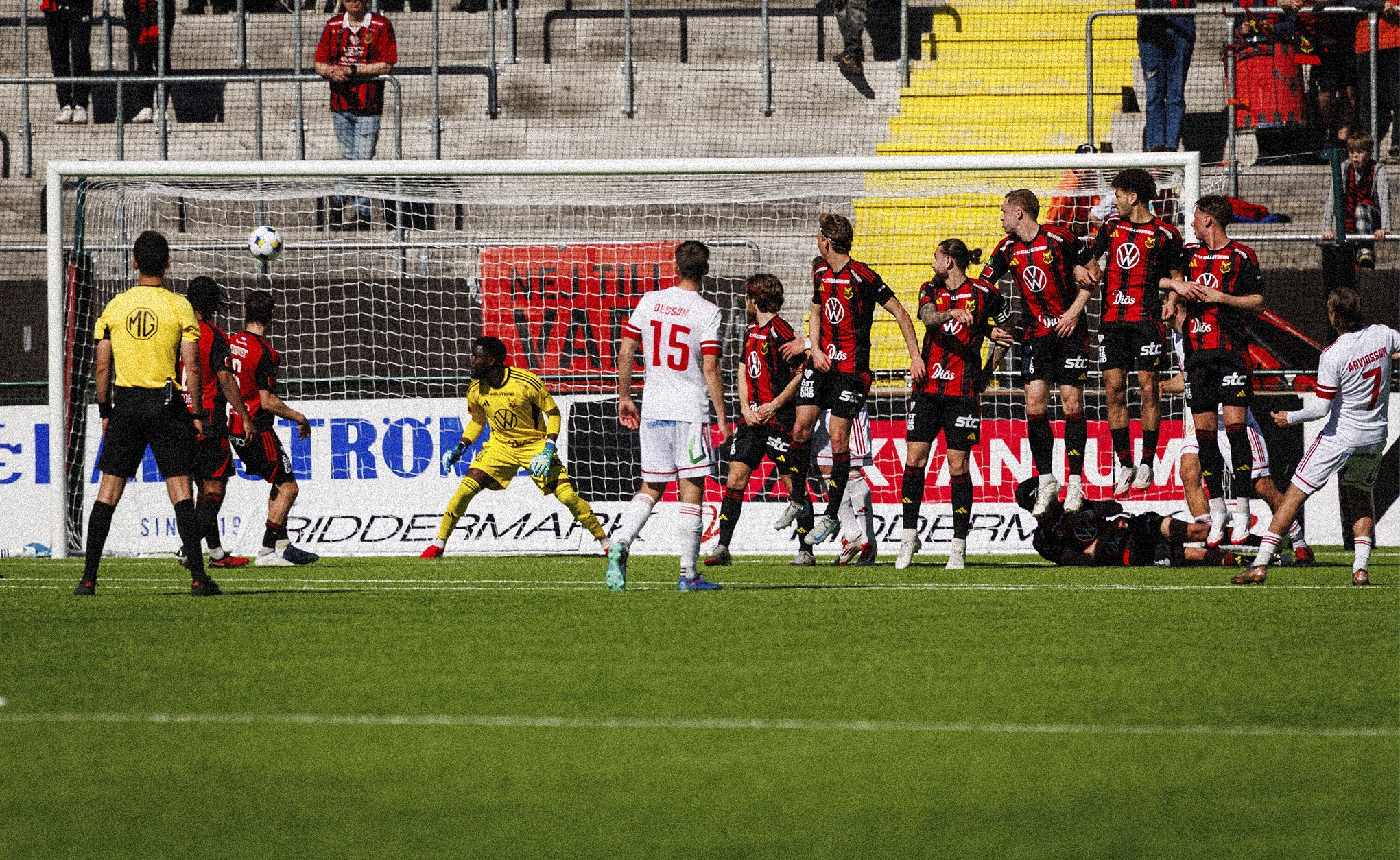 Johan Arvidsson skruvar in en frispark till 1-1.