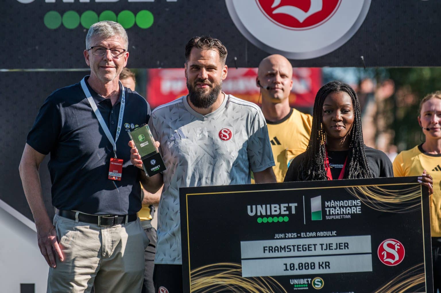 Inför avspark i lördagens match mot Västerås mottog Eldar Abdulic statyetten för Månadens Tränare i Superettan i juni.