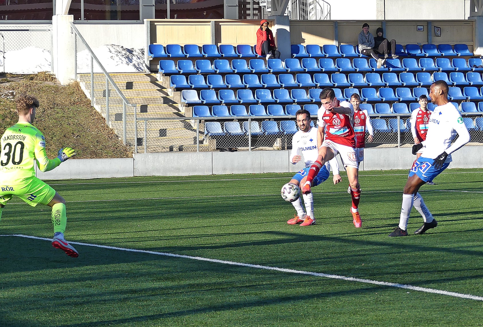 Ahmed Bonnah gör mål på Otto Lindell, som för övrigt lånat Felix Jakobssons tröja.