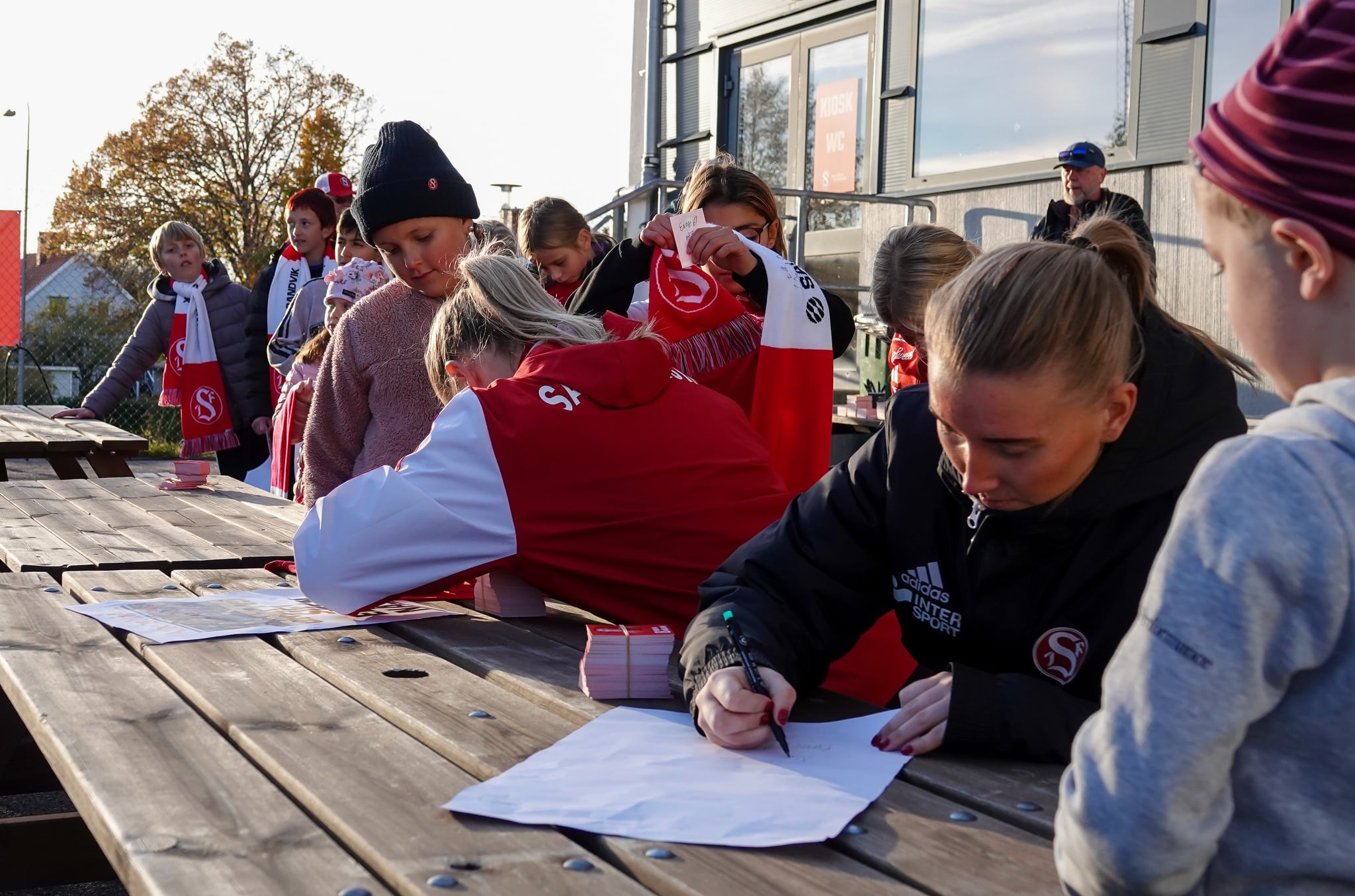 Men den här matchen var det förstås inte resultatet som var det viktiga. I stället kan vi glädja oss åt att laget fick de hyllningarna de förtjänade. Glädjande var också att många unga supportrar stannade kvar efteråt för att få autografer och prata med de nyblivna elitettan-spelarna.
