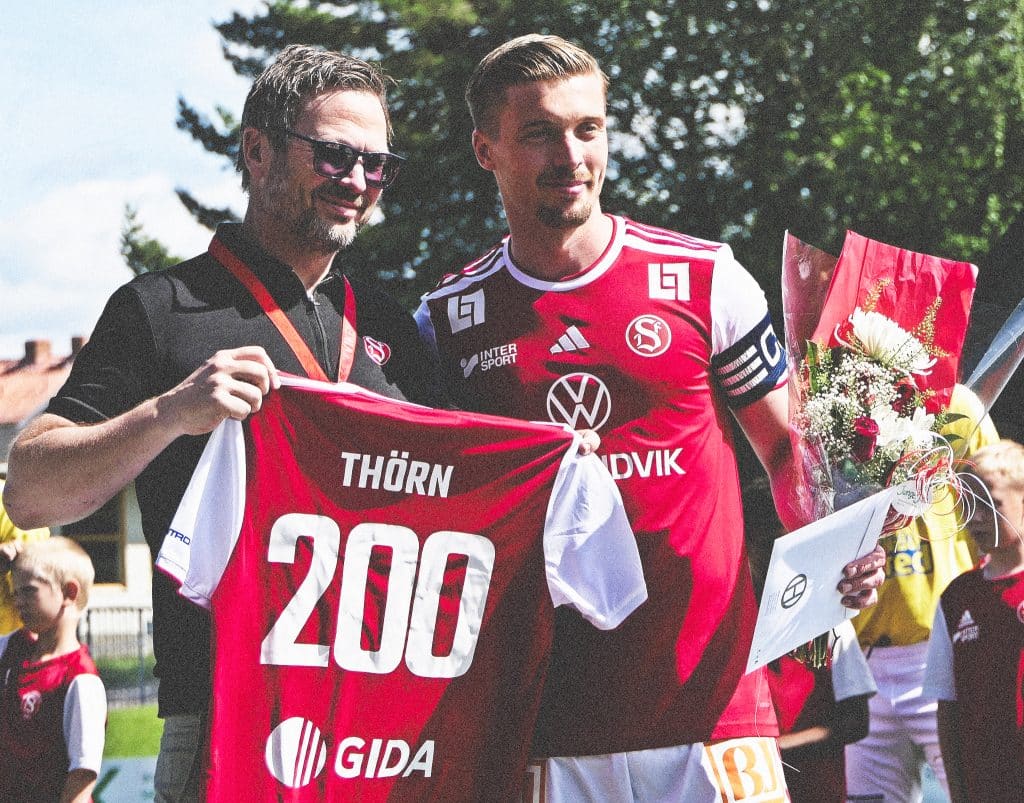 Innan matchen mot Falkenberg firade vi lagkaptenen och Drömelva-medlemmen Gustav Thörn för hans 200 tävlingsmatcher i Sandvikens IF.