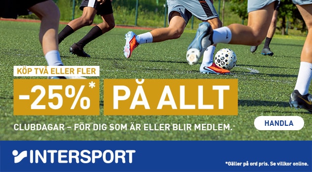 Gör er redo för höst med vår samarbetspartner INTERSPORT som har Clubdagar 23/9–29/9 i butik och på intersport.se! 25% rabatt och massa klipp till ännu bättre pris till alla som är eller blir medlem.
