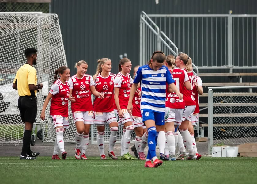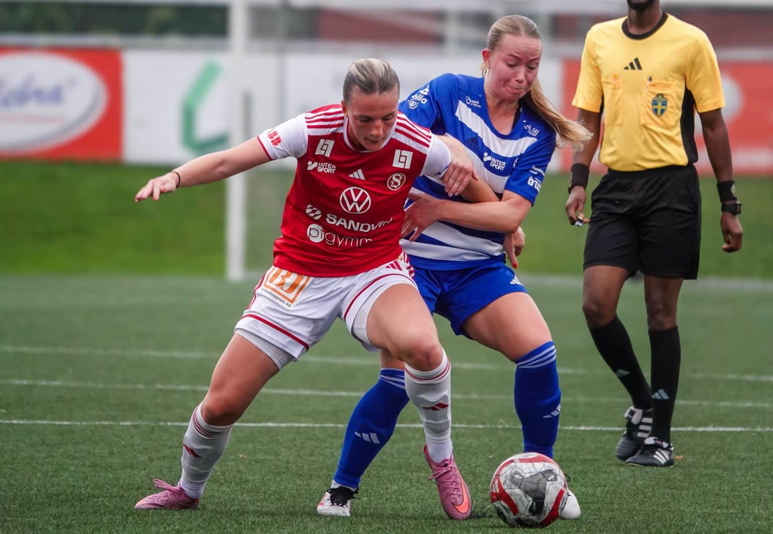Rödvästarna tog tag i matchen från start och tog också ledningen precis innan paus när Lova Andersson petade in en retur från nära håll efter att bortamålvakten räddat Maja Alvins skott.