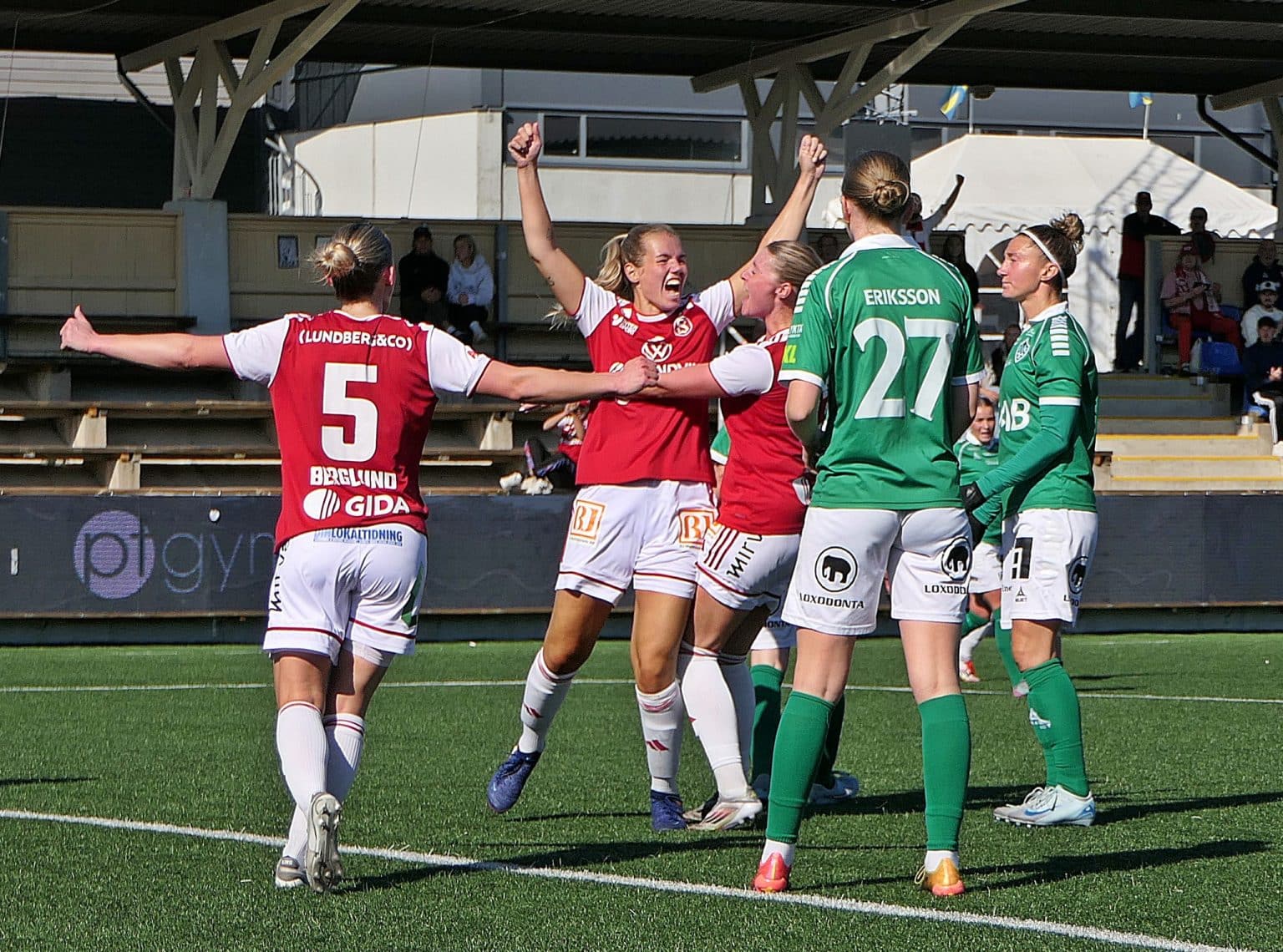 Matchen var en riktig kamp, och där båda lagen hade sina perioder. Egentligen skapades knappt några riktigt heta chanser i över huvudtaget under 90 minuter, utan det enda som skulle skilja lagen åt var en hörna 20 minuter från slutet. Perfekt levererad av Christina Mårtensson till Mimmi Sellström som bombade in 1-0 med pannan.
