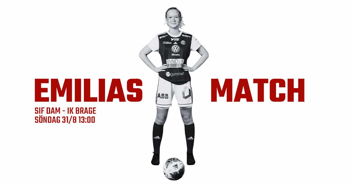 Söndagens match mot Brage blir årets Emilias Match där vi tillsammans med Emilias familj delar ut ett stipendium till en flickspelare i föreningen som representerar precis det som beskrev Emilia: en bra lagkamrat med en hög träningsmoral och en vilja att utvecklas.